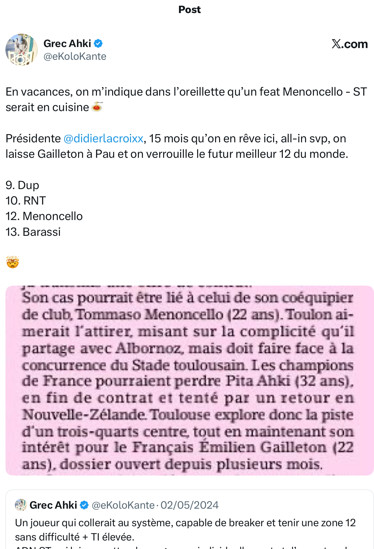 Du côté de Toulouse, certains semblent manifestement désormais privilégier un autre profil que celui de Gailleton :bienjoue2: :mrgreen: :grin: